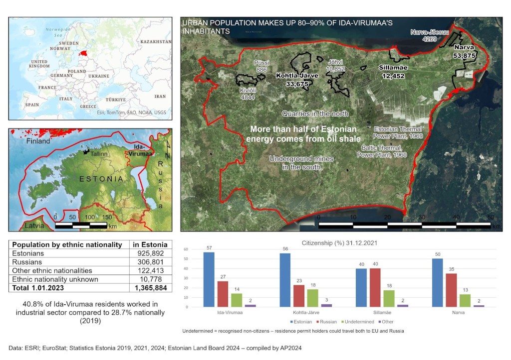 The project focuses on the Ida-Virumaa region, which has undergone multiple crises and is currently marked by pronounced socio-spatial inequalities, warranting special governmental attention. This makes it an apt site for research on transitions and transformations. Situated at the geopolitical border between the European Union (EU) and Russia, the region is shaped by ongoing tensions. As a peripheral region within the broader European periphery, Ida-Virumaa offers a particularly intensive “living laboratory” for such inquiry. It is central to Estonia’s energy independence, as oil shale mining and chemical processing remain key industries. Hosting a large Russian-speaking population – largely originating from other parts of the Soviet Union during industrialisation and urbanisation from the late 1940s to the 1980s – has been framed as a potential security concern since the 1990s, particularly following the full-scale war in Ukraine in 2022.
